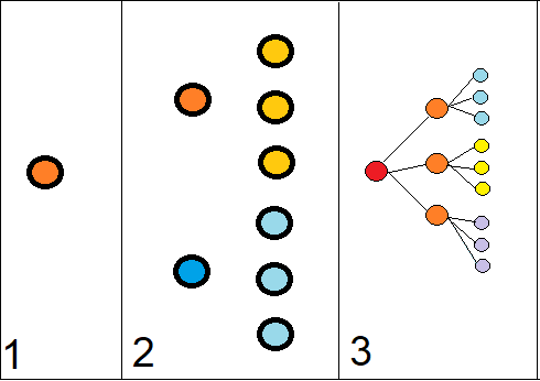 The layer 1 is then connected to X amount of people, who in turn are connected to X amount of people,