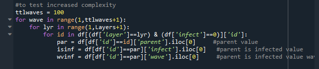 Once my population was established, I started by setting all infections to zero, and let the dice roll in layer 1.