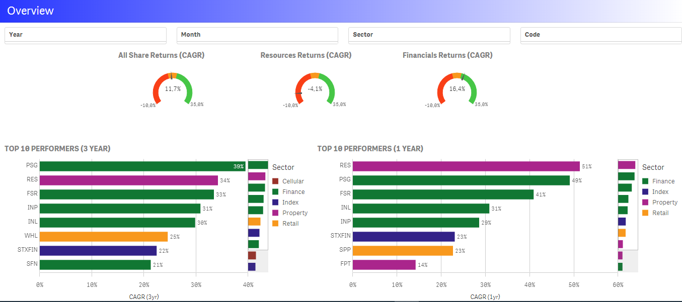 View of how well the different sectors are doing and the top 10 performers for my selection period.