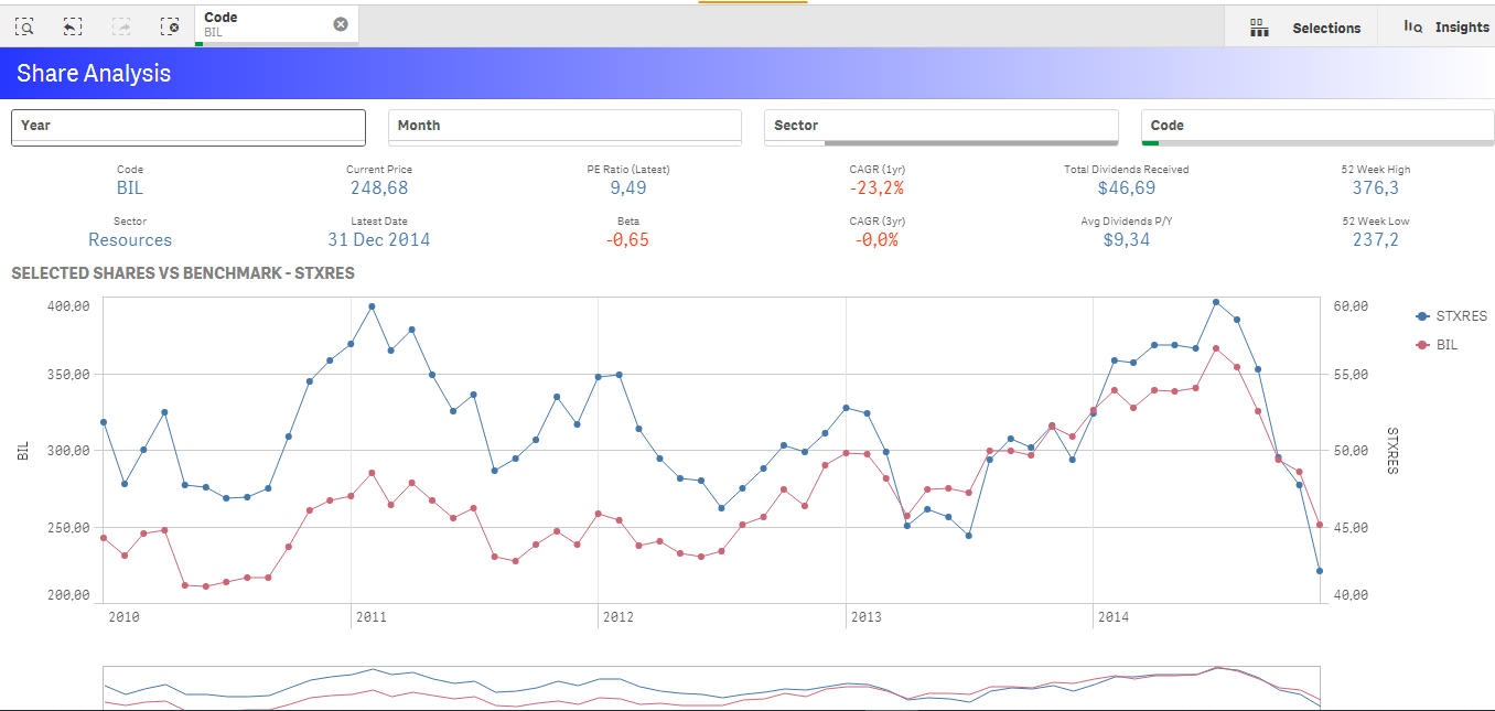 Furthered with a line chart that displays the stock movement compared to the relevant index.