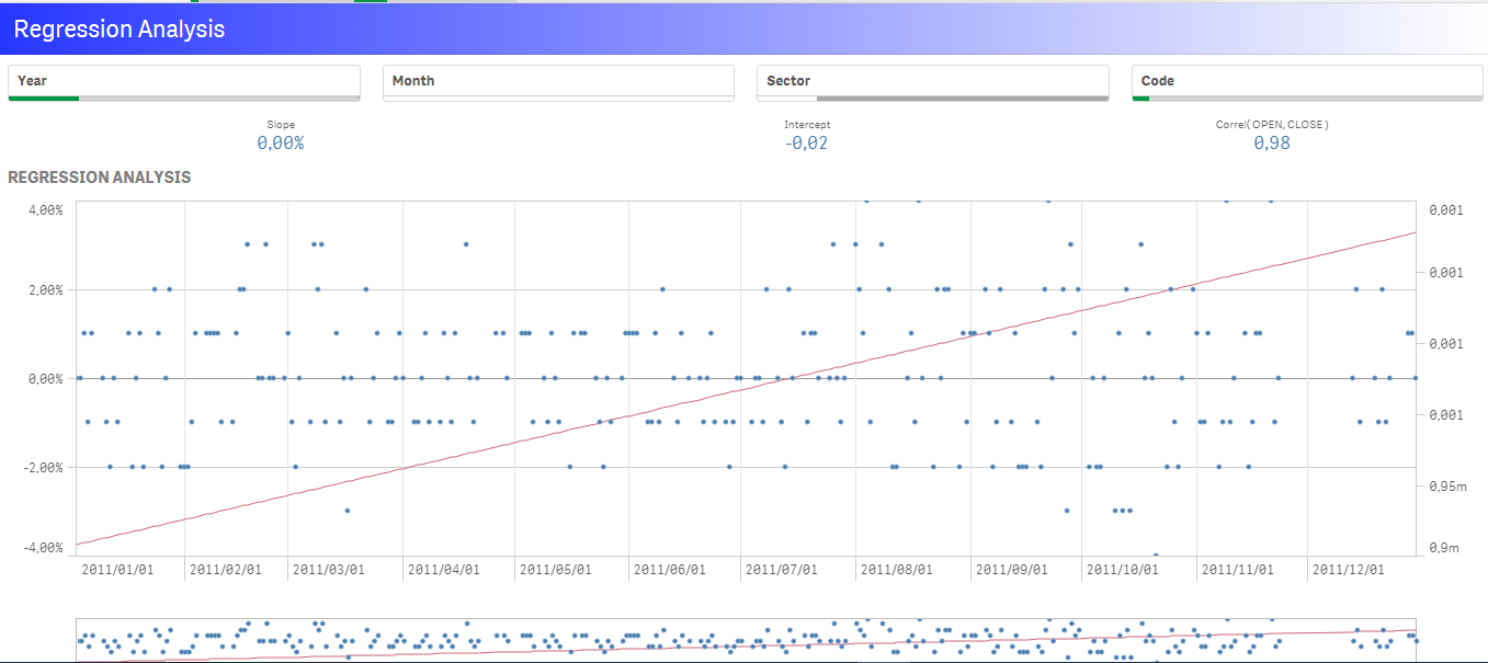 Plotting the daily gains of the stock one can chart a linear regression model, showing the line, calculating the slope