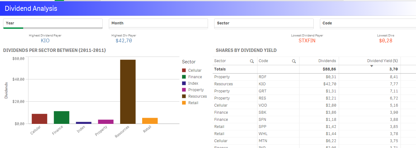 Finally a view on some of the more fundamental measures like dividends, dividend growth and dividend yield is shown.