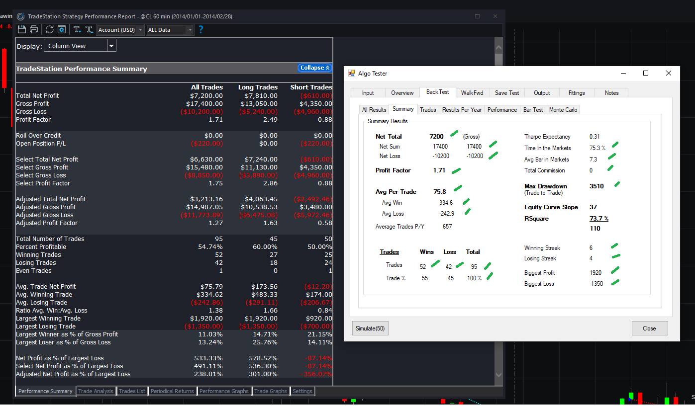 Finally to sanity test my project I compared it other backtesting software, to make sure that the results were similar.